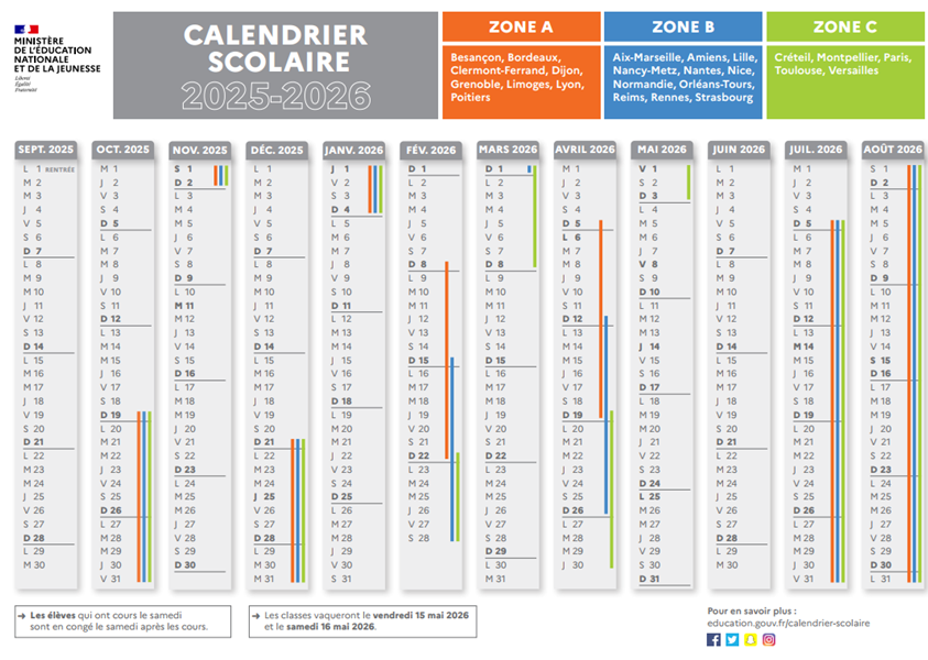 Calendrier scolaire 2025-2026